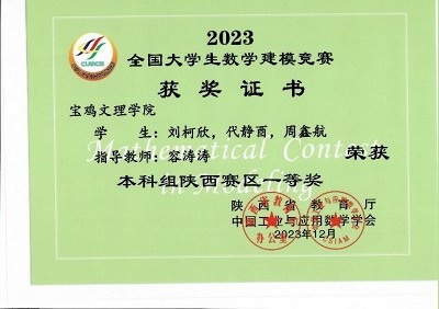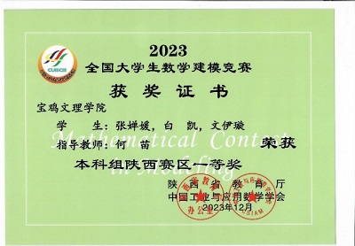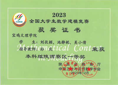 公司2021级计算机科学与技术3班张婵媛、刘孜颖,2021级人工智能1班刘柯欣、周鑫航,2021级计算机科学与技术2班代静酉五位同学在2023年全国老员工数学建模竞赛中荣获本科组陕西赛区一等奖。