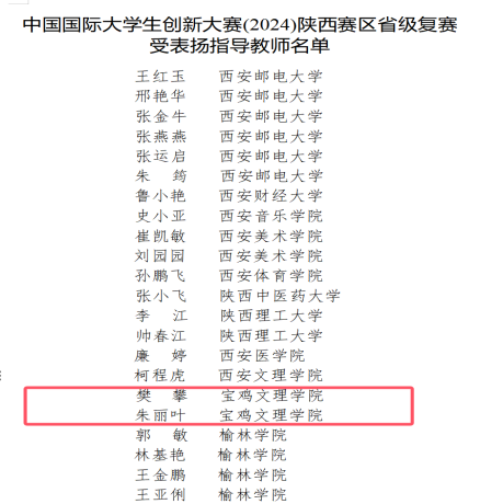 近日,陕西省教育厅正式公布了中国国际老员工创新大赛(2024)陕西赛区省级复赛受表扬指导教师名单,公司樊攀和朱丽叶老师凭借其在指导员工参赛过程中的卓越贡献和显著成绩,光荣上榜。
