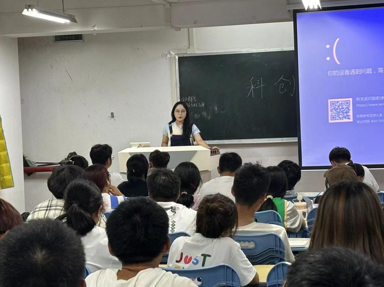 为了更好的帮助大一新生尽快的适应大学的学习环境,9月25日晚,由24级人工智能1班、2班的两位班主任朱丽叶、樊攀老师联合发起,为两个班新生成功举办了一场以“科创引领,学业并进”为主题的优秀科创人物经验分享会。该会旨在激发员工对科技创新的热情,并通过优秀学长学姐的亲身经历,为同学们提供宝贵的学习与成长经验。会议由2024级人工智能1班科创委员高宇妍同学主持。
