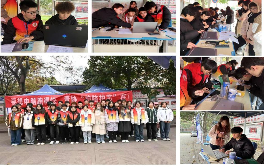 活动中,志愿者提供专业的电脑维修服务,帮助大家解决电脑问题,还安排了专业的人员进行维修,为广大师生提供清除电脑灰尘、电脑瘦身、电脑清洁以及解决电脑黑屏、蓝屏、重装电脑显卡、激活office等维修服务,确保大家能够尽快恢复使用。活动现场,志愿者们热情耐心地接待每一位前来咨询或维修的同学,他们认真听取同学的问题或需求,细致地检查每台电脑。同时,志愿者们的热心服务和专业能力也得到了同学们的认可和赞赏。