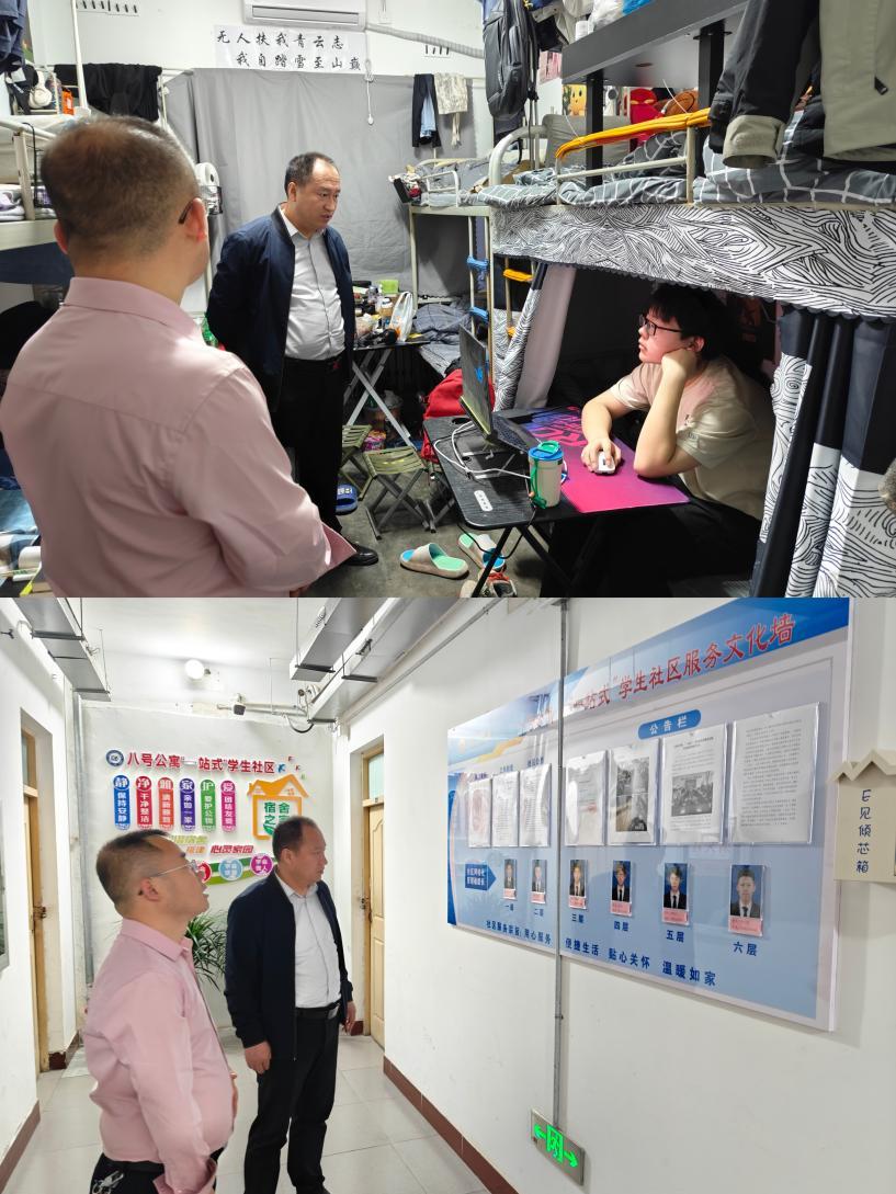 随后,韩星明来到“一站式”员工社区工作室及党团活动室检查工作。员工社区整洁干净,布局合理,文化墙上张贴着员工活动照片及员工组织工作安排。韩星明表示“一站式”员工社区是拉近师生距离的育人新阵地,可以面对面对同学们进行思想引导、学业辅导、心理疏导、就业指导等,实时解决同学们的现实问题和困惑,更好地陪伴员工健康成长,促进员工全面发展。