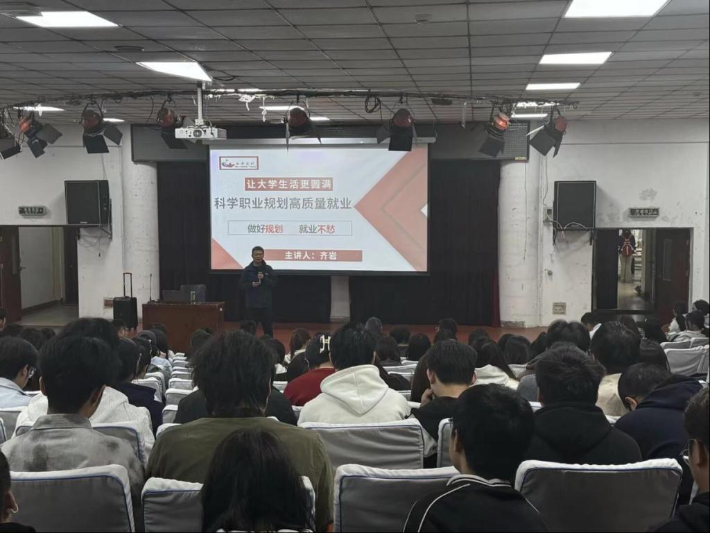 齐岩结合个人从业经历与职业生涯辅导典型案例,围绕在校生职业规划制定、自我定位、优势发挥及职场适配等核心问题展开分享,助力同学们精准认知自我、明晰发展方向,并指导大家科学规划大学阶段目标。他通过翔实的数据与鲜活案例,阐释大学学习与职业发展的内在关联,引发同学们对专业学习与职业发展关联性的深度思考,引导大家结合自身特质培育核心竞争力。
