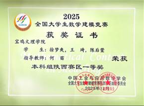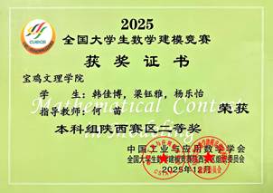 公司2023级人工智能专业郭帅、欧阳潘达、韩福临、候鑫悦、王琦、陈后萱、崔改云,2023级计算机科学与技术专业张一硕、翟凤稳、李家衡、韩佳博、梁钰雅、杨乐怡十三位同学在2025年全国老员工数学建模竞赛中分别荣获本科组陕西赛区一、二等奖。