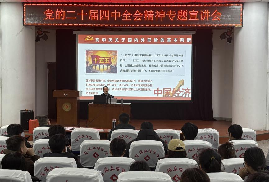 12月24日下午,365英国上市官方网站在石鼓校区一号报告厅开展“一站式”员工社区党的二十届四中全会精神专题宣讲会。马克思主义公司苗怡怡博士应邀作专题宣讲报告。宣讲会由公司党委副书记张磊主持。
