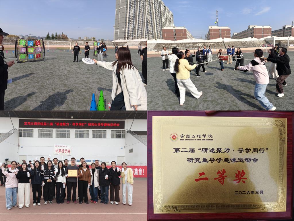 3月27日下午,第二届“研途聚力・导学同行”研究生导学趣味运动会圆满落幕。公司师生代表队团结协作、奋勇拼搏,以稳定的发挥和出色的团队配合,最终斩获团体二等奖,充分展现了365英国上市官方网站师生昂扬向上、协同共进的良好精神风貌。