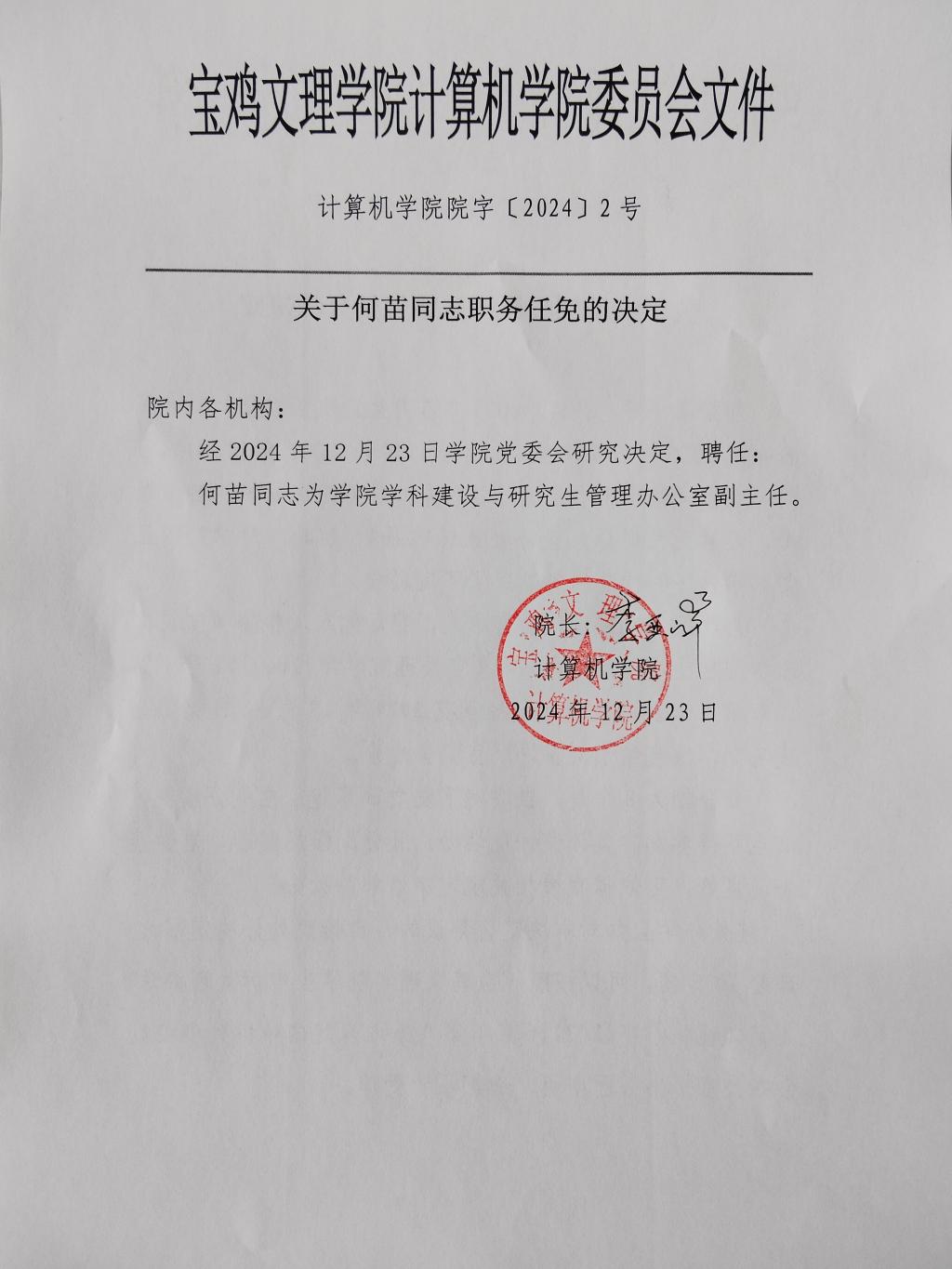 关于何苗同志职务任免的通知