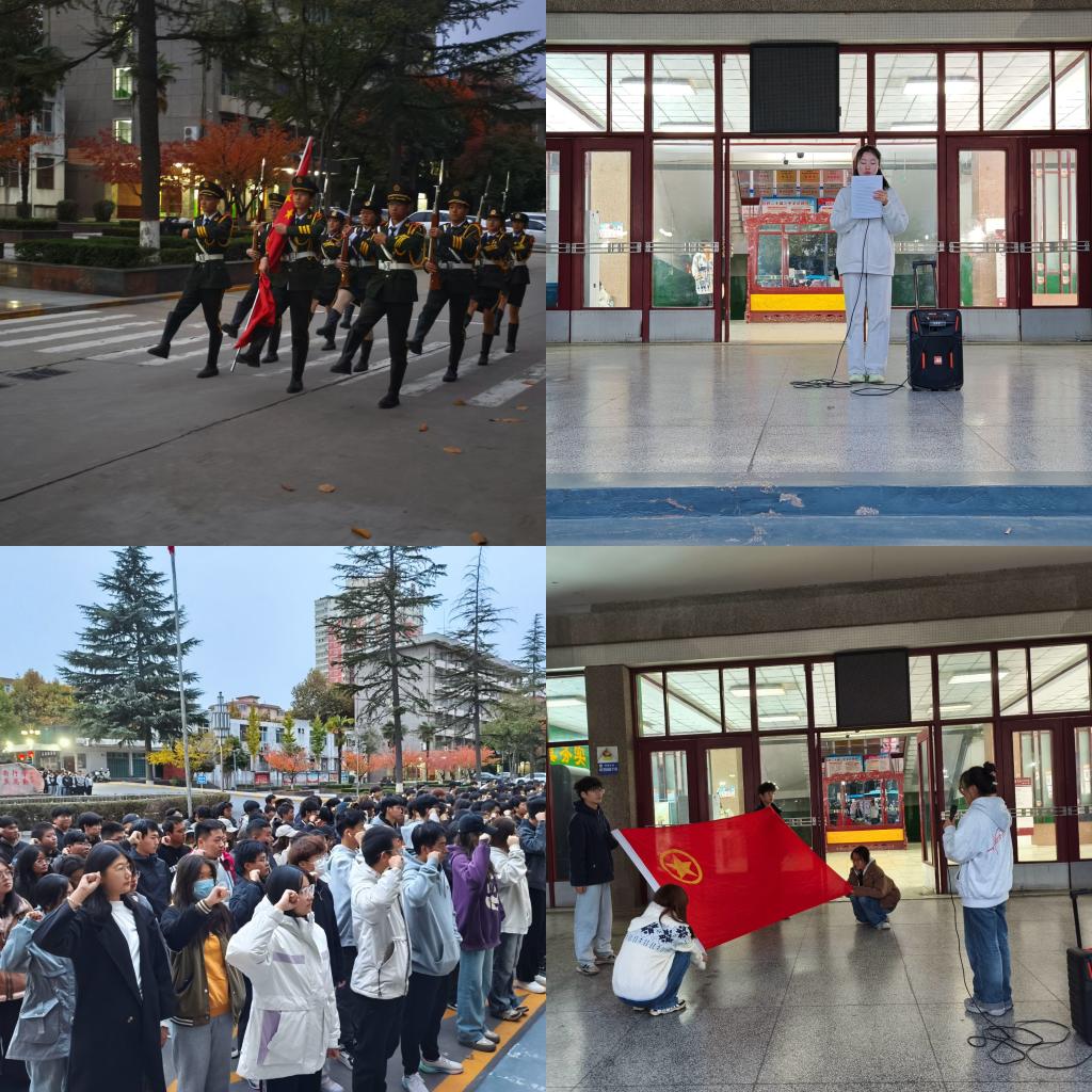 在同学们的注视下,国旗仪仗队的同学们迈着整齐划一、铿锵有力的步伐,护送着五星红旗正步走向旗杆。随着激昂的《义勇军进行曲》响起,五星红旗冉冉升起,在熠熠晨光中迎风飘扬。升旗仪式结束后,员工代表2024级软件工程1班张钰馨同学国旗下演讲了主题为《树消防意识,创平安校园》,句句铿锵有力,呼吁同学们树立消防意识,守护校园安全。从了解消防设施到注意日常用电细节,让消防安全意识深入人心,展现出当代学子对校园安全的高度责任感。2024级软件工程1班张梦帆同学带领团员青年们面向团旗宣誓,作为新时代青年身上将肩负着更重的历史任务和责任,将要承担起党、国家和共青团组织对我们的重托。