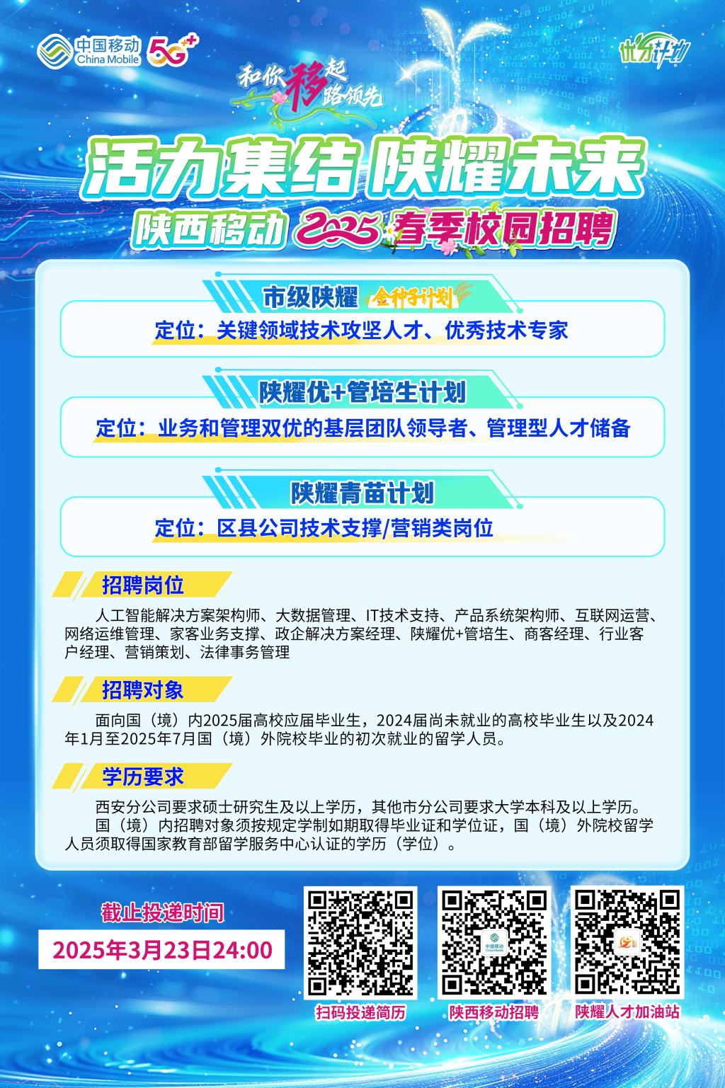 活力集结,陕耀未来 陕西移动2025春季校园招聘